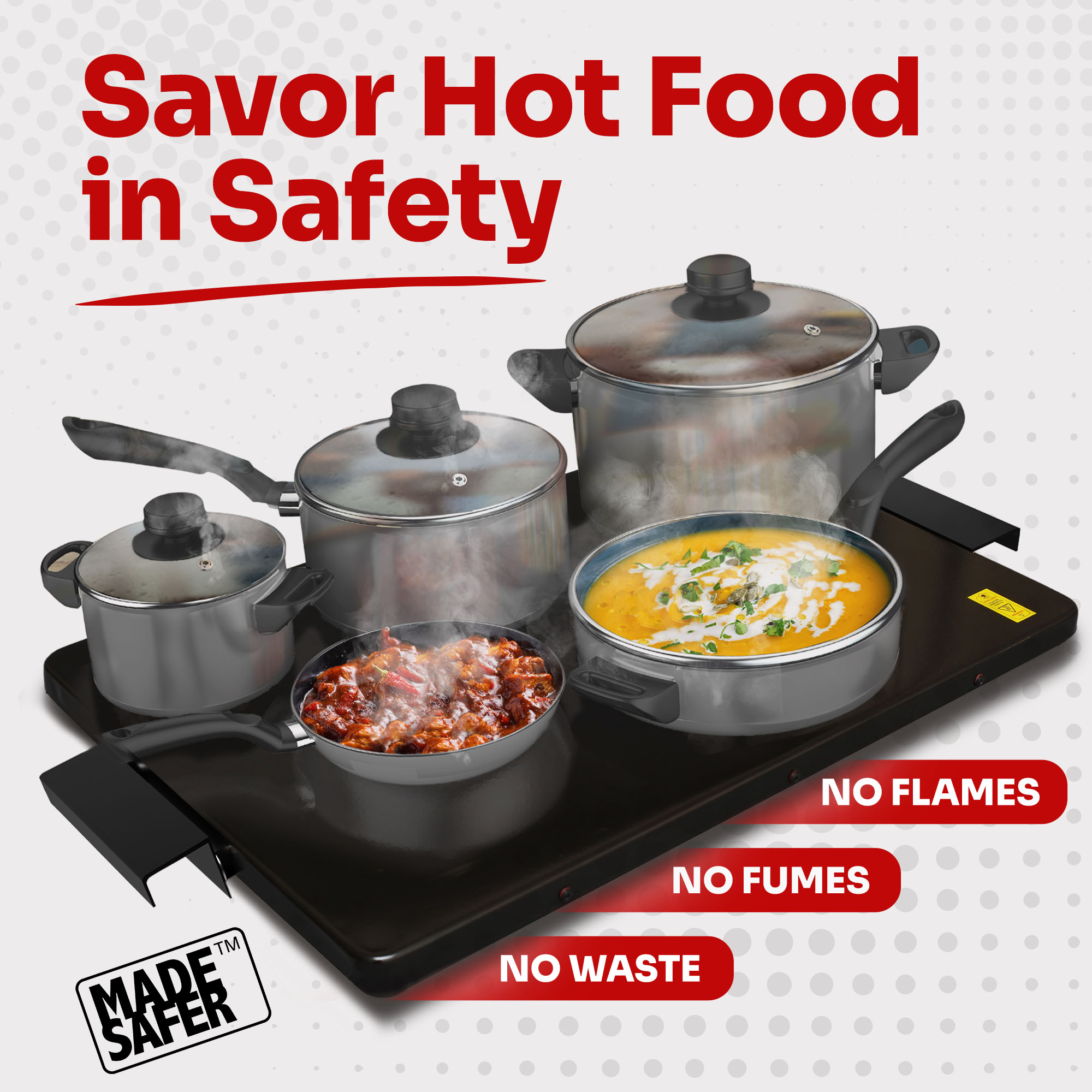 Discover a new level of safety with our MadeSafer Hotplates. We’ve reimagined hot food trays to ensure your peace of mind. Our 24-hour food warming hot plate and buffet server has undergone rigorous testing to ensure the highest level of safety.