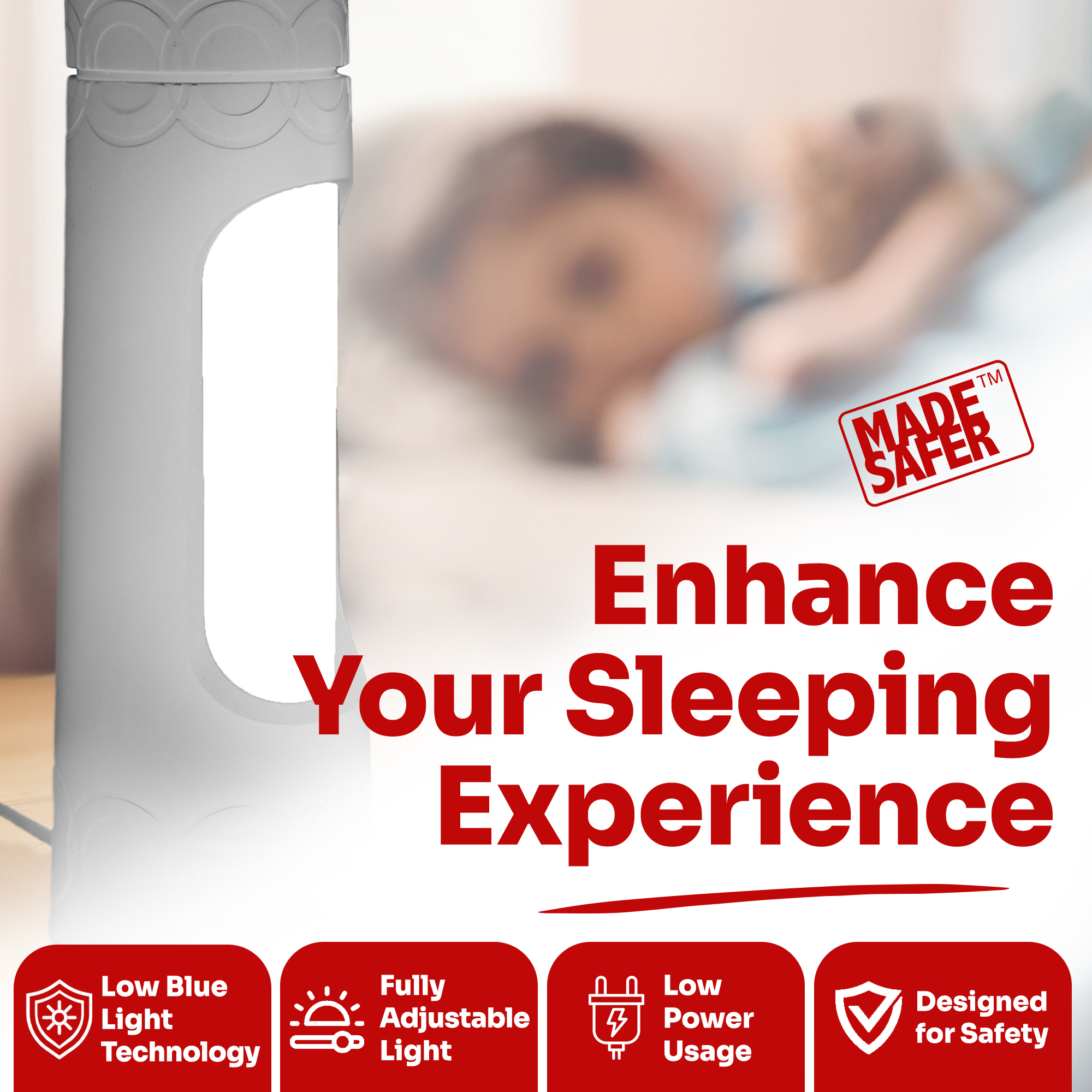 Our MadeSafer night light has a high brightness whilst at the same time also being extremely energy efficient- it consumes only 9 watts of power, yet it provides the equivalent of 60 watts of light output. You can easily adjust the light output to suit your needs, simply twist the top and a translucent shade turns to gradually hide or reveal the desired amount of light. This allows you to set the light output that is just right for you- all without needing to use the on/off switch. Get the light levels that are perfect for you, with only a simple twist! This night light is also equipped with a unique LED bulb which includes a special blue ray filter that effectively blocks blue light, which helps to create a more conducive environment for you to sleep better. The lamp is also safe to use around babies and toddlers, so it can help to create a more harmonious living space by providing light for reading, working or other tasks whilst not disturbing others. This makes our MadeSafer night light the perfect addition to homes, hotels and other hospitality businesses. As well as this, the lamp is very compact. This makes it very easy to transport so the lamp is also great to be used not just throughout the home, but even when you are away on holiday. The lamp also uses a sleek, modern and elegant design and comes in a range of colours to fit with any room décor. This means that it is the perfect classy gift for someone with high standards- including yourself…