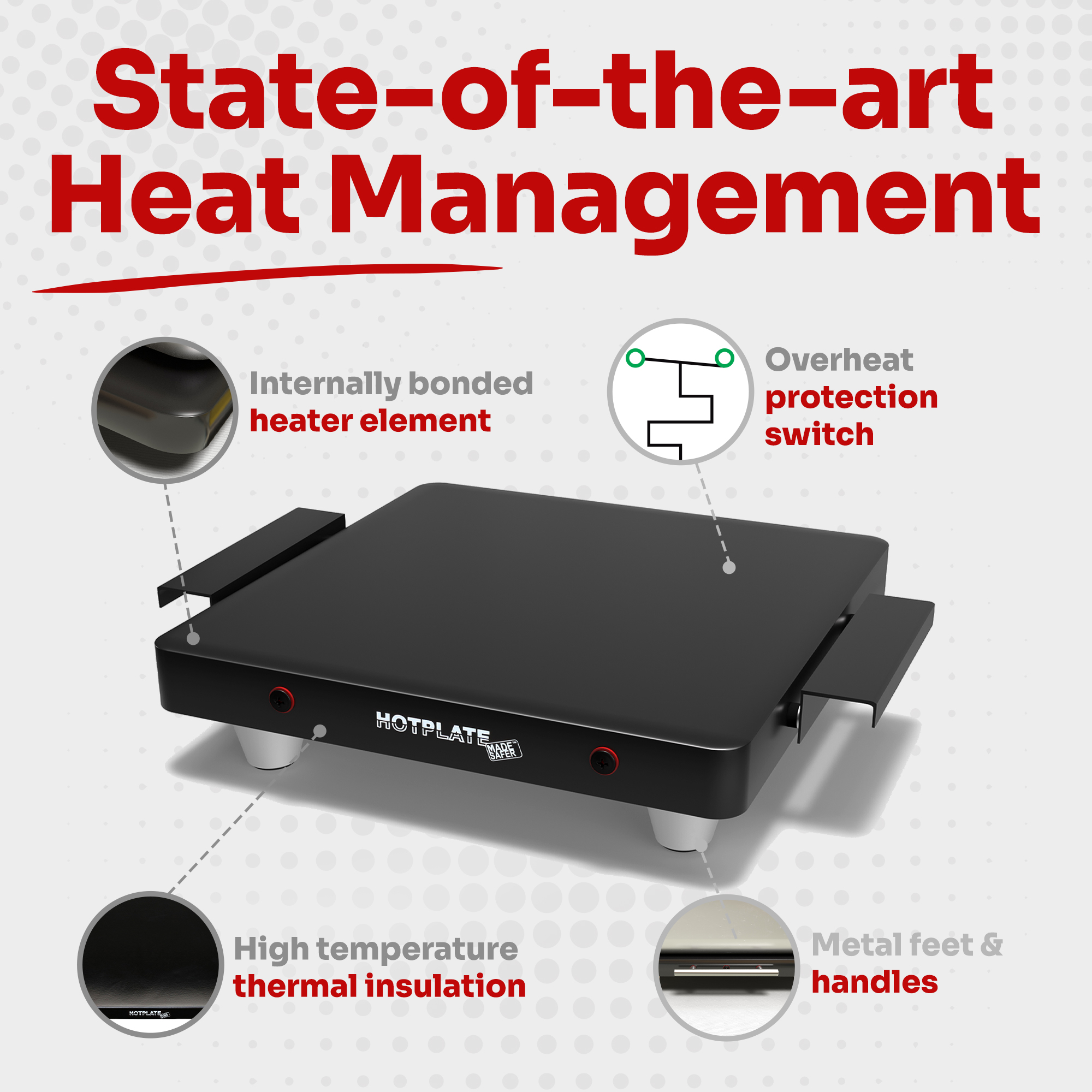 - Cool-Touch Handles: Handles remain cool to the touch, allowing safe handling even when the hotplate is in use