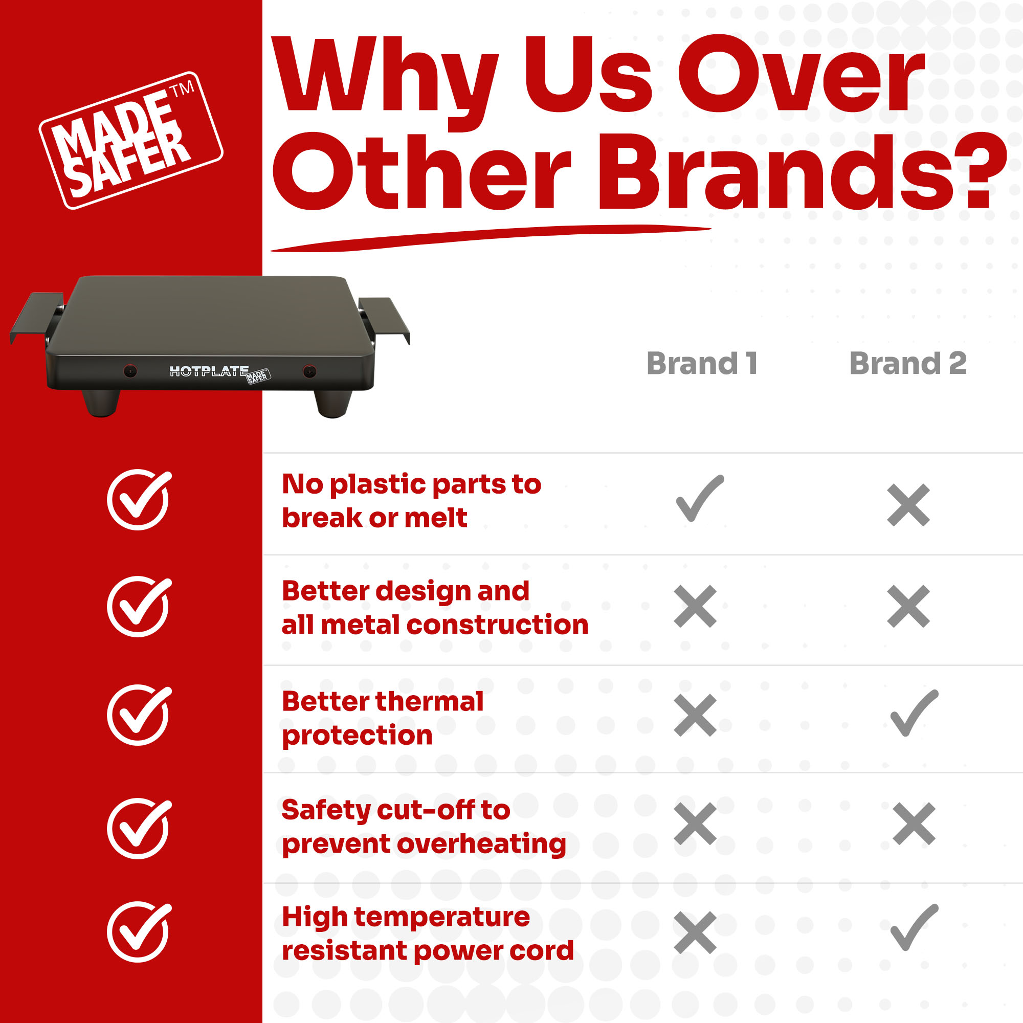 Discover a new level of safety with our MadeSafer Hotplates. We’ve reimagined hot food trays to ensure your peace of mind. Our 24-hour food warming hot plate and buffet server has undergone rigorous testing to ensure the highest level of safety.